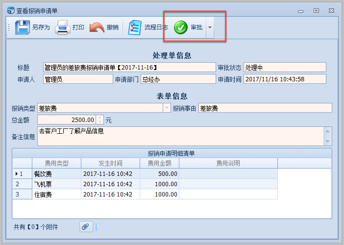 双击申请单列表,可以打开具体的申请单进行查看详细信息,如下所示。