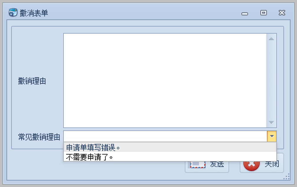 如果表单需要撤销,单击【撤销】按钮,会弹出申请单撤销的确认界面,在其中录入撤销意见确认即可。