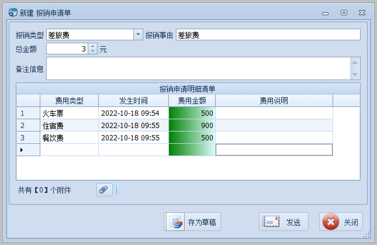 双击草稿列表的申请单,可以打开申请单的填写界面,如下所示。