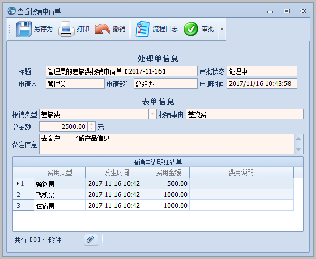 双击申请单,可以打开查看详细的申请单信息,如下界面所示。