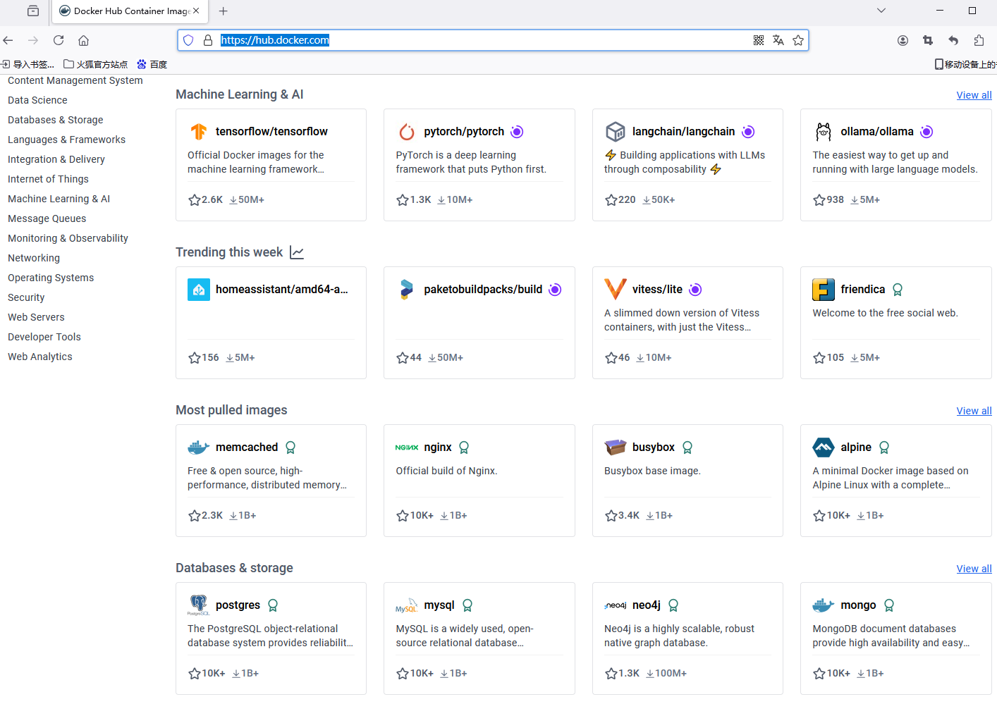 因为命令搜索不出来 只能上蔷, 到 https://hub.docker.com/ 上搜索 自己需要的镜像