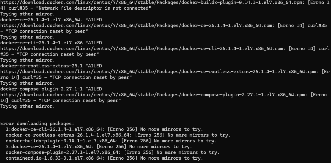 安装报错 多运行 yum install docker-ce docker-ce-cli containerd.io 几次 总能乐成 (本人运行了10几次 才乐成)