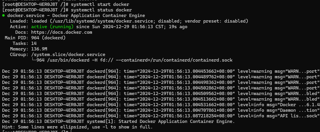 [root@DESKTOP-4ER0J8T /]# systemctl start docker