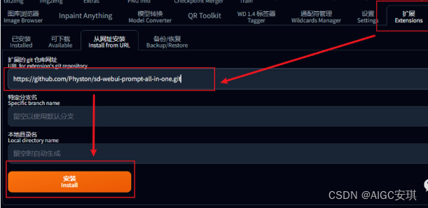 前两种方式在网络欠好时大概会安装错误,更彻底的方式是直接下载插件安装包进行安装。比如将下载好的压缩包解压后放到extensions文件夹下。https://github.com/Physton/sd-