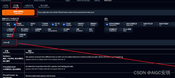 打开可安装选框,点击load form就可以看到所有可安装的插件。在搜素框搜刮到要安装的插件,点击右侧install就可以自动安装了。