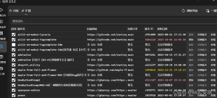 也可以在启动器中的模子管理–扩展栏目进行更新,卸载。