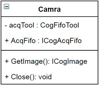 硬件设备的使用过程通常分三步:连接→使用功能→断开。所以,Camra类的方法按照这三部分添加:GetImage,Close。连接放在构造方法中。