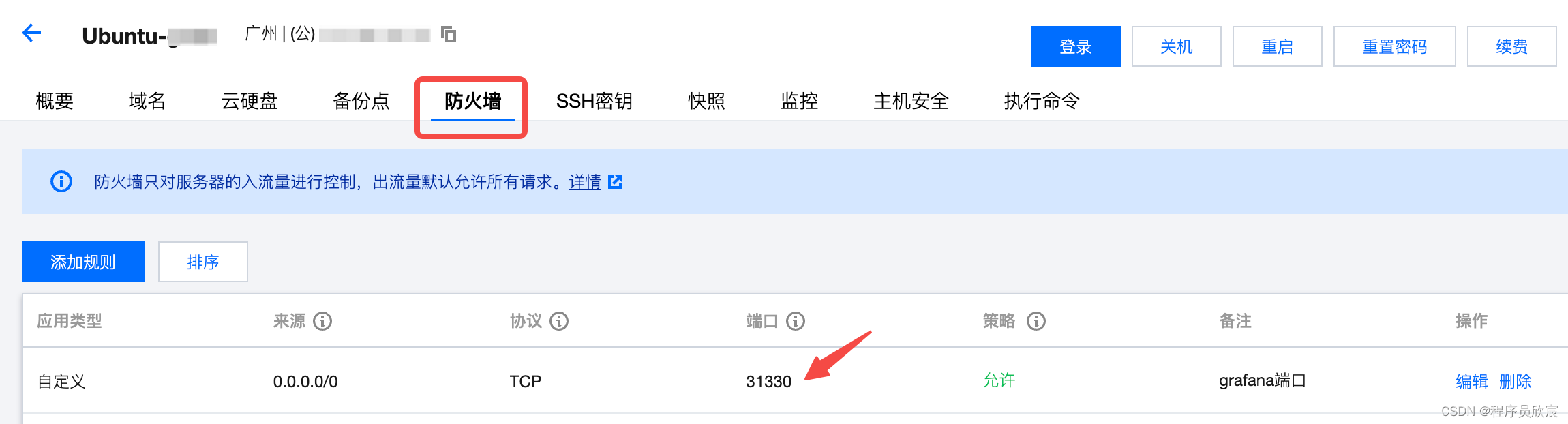 最后,如果您用的是云服务器,记得在公网放开端口,我这边是腾讯云服务器,放开方式如下图