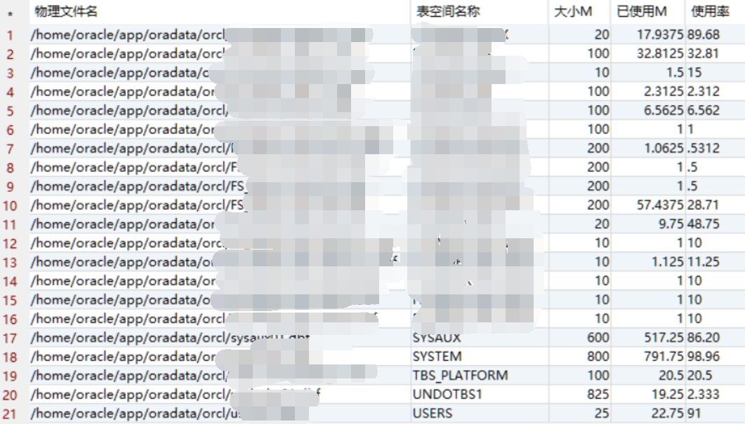 1.1先看了下表空间情况,生产环境表空间大概90G,用了才一半不到