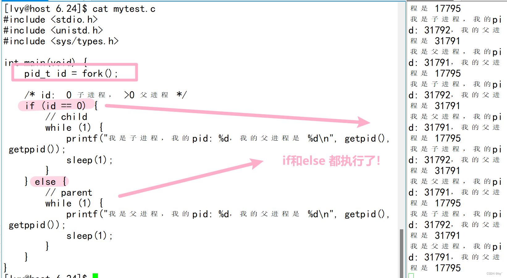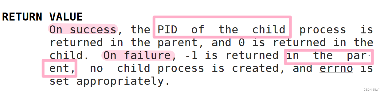 。通过差别的返回值,可以让父进程和子进程区分差别的实行流,实行差别的代码块。