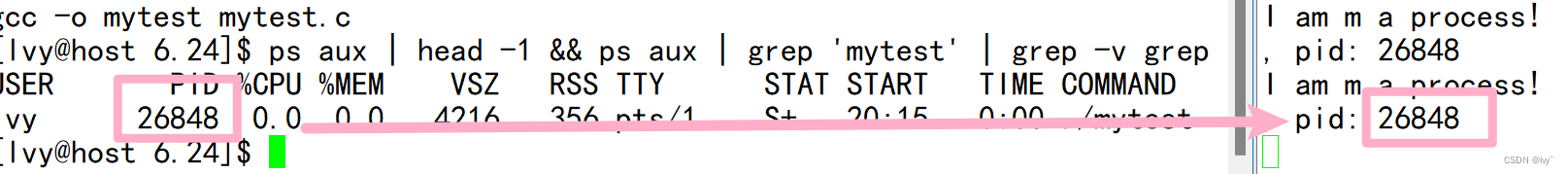 printf("I am m a process! , pid: %d, ppid: %d\n",getpid(), getppid());