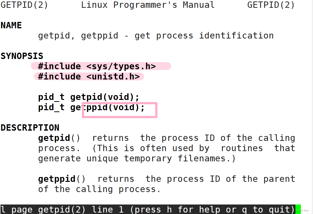printf("我是父进程,我的pid: %d,我的父进程是 %d\n", getpid(), getppid());