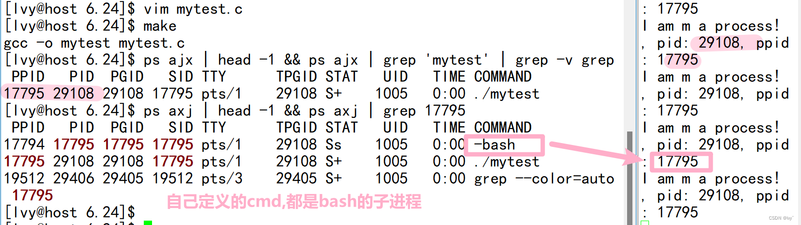 printf("我是子进程,我的pid: %d,我的父进程是 %d\n", getpid(), getppid());