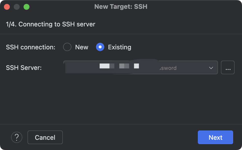 点击Existing,选择上面已经设置好的SSH,然后点击next。
