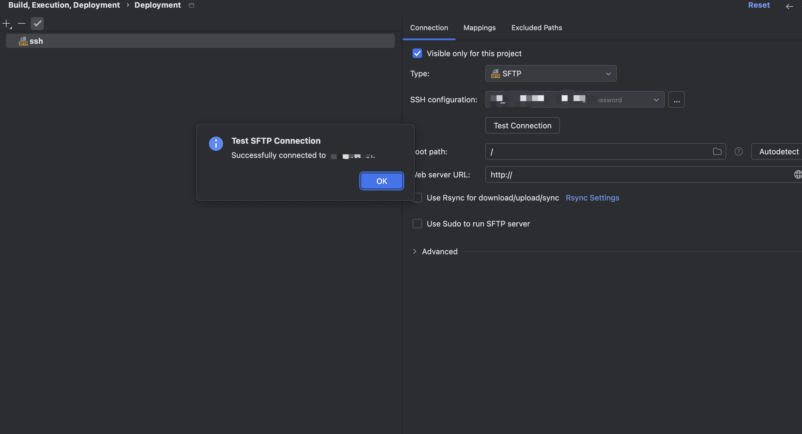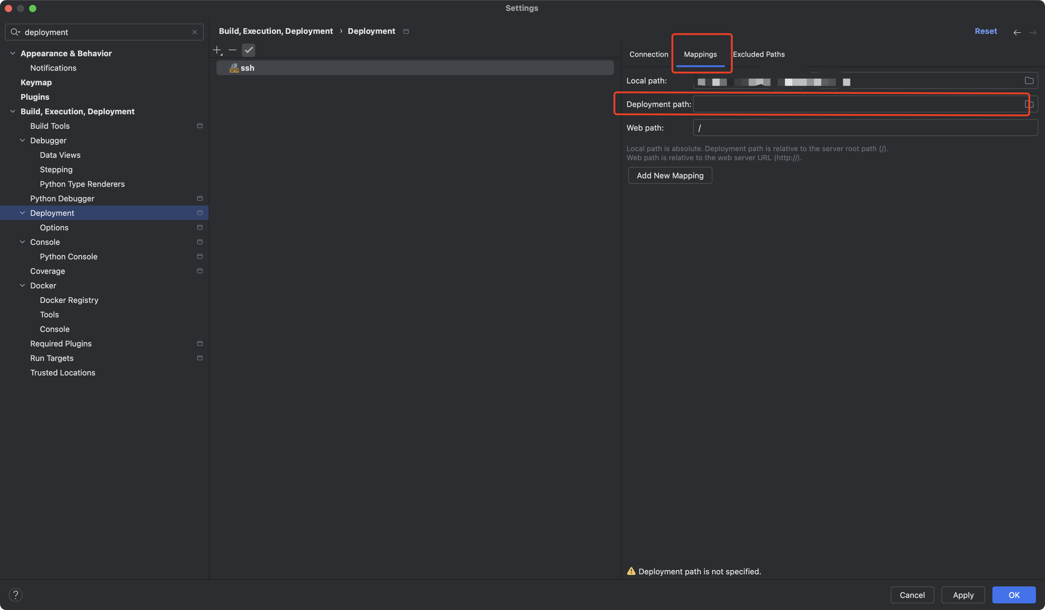为了后续当地与服务器之间同一项目可以内容同步,我们还须要设置二者之间的项目路径映射,即当地项目在长途服务器中存放的位置。