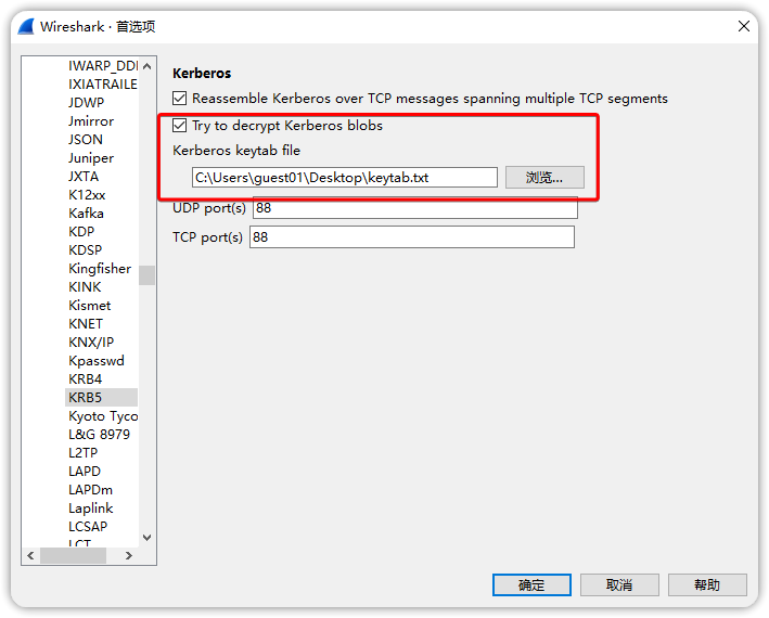 一个 keytab(简称“密钥表”)存储一个或多个主体的长期密钥。通常,keytab 以尺度格式的文件表示,尽管在极少数情况下,它们可以以其他方式表示。keytab 最常用于允许服务器应用程序接受客户端的身份验证,但也可以用于为客户端应用程序获取初始凭据。Wireshark 官方提供了一些 keytab 的制作方法,这里选择由 Dirk-jan @_dirkjan Mollema 编写的 keytab.py 脚本文件,该工具不必要明文暗码,只必要原始密钥。