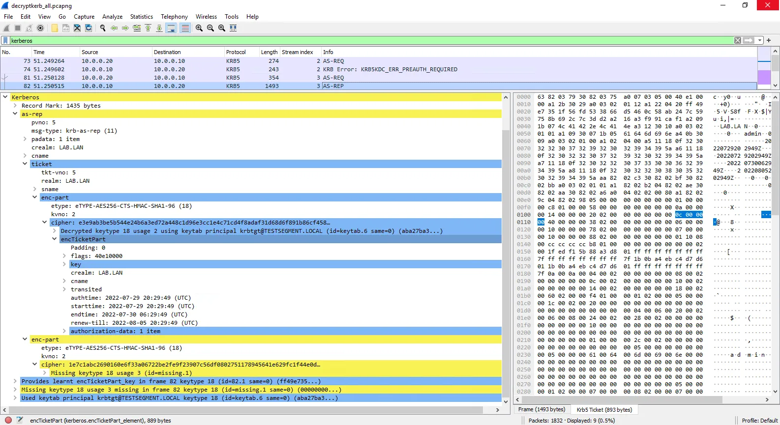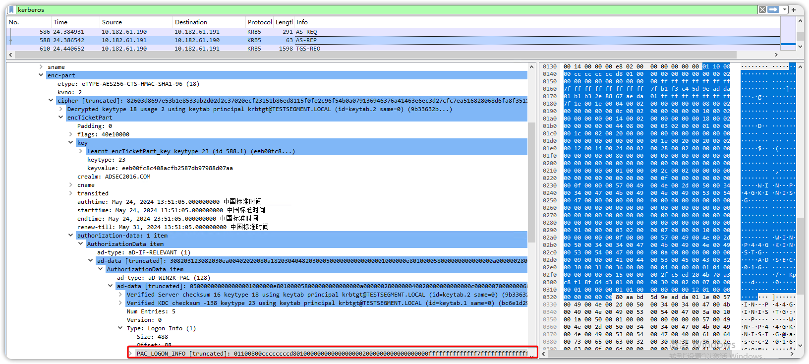 这不仅可以解密 Kerberos 的交换,TGT 申请过程,对于 NTLM、NTLMSSP 之类的流量也是可以解密的。