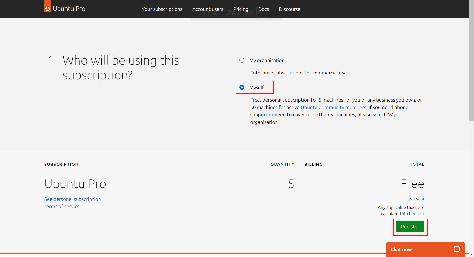 勾选Myself用于个人利用,再点击Register进入个人订阅页面。