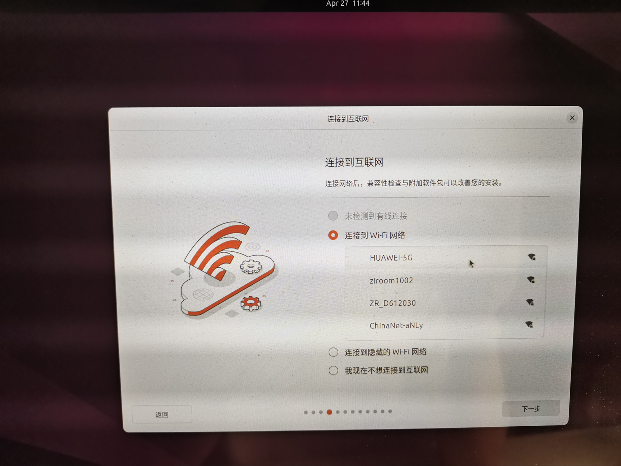 连接互联网:选择你的网络再连接即可,点击下一步。