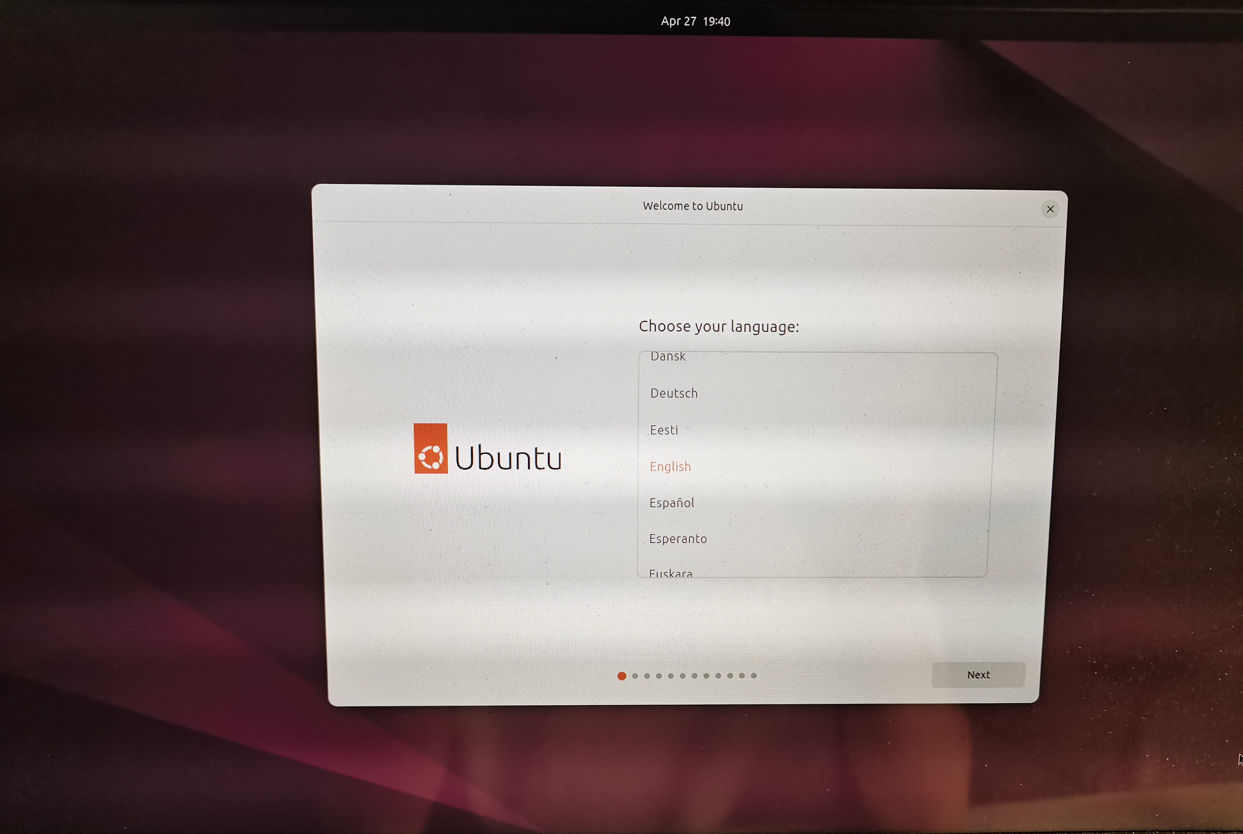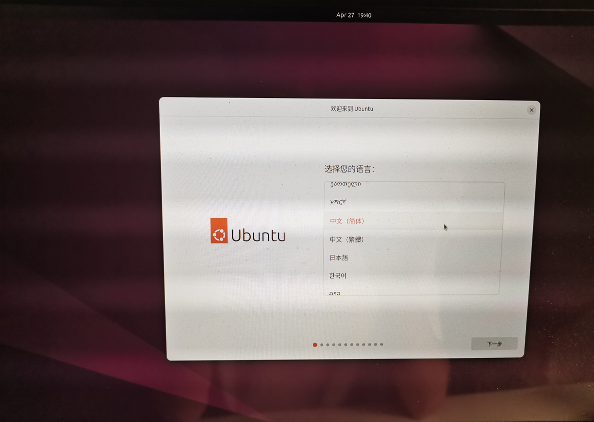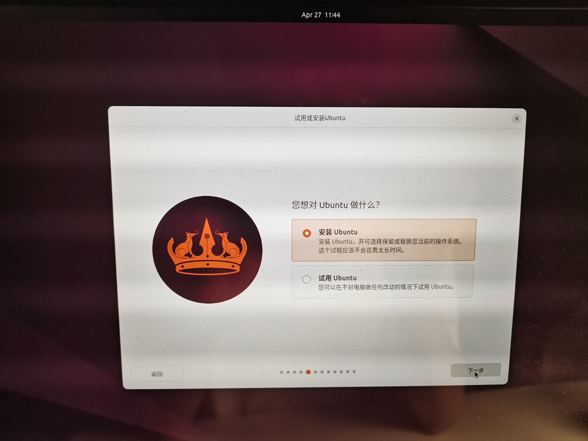 开机时选择Try or Install Ubuntu进入Ubuntu安装程序。