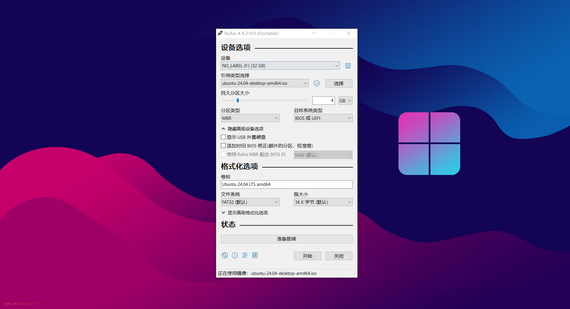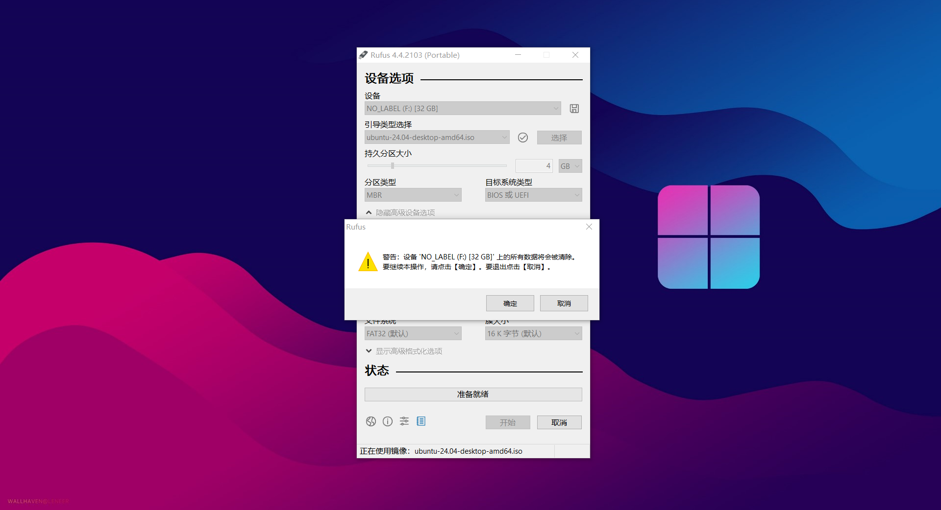 如果必要创建持久化U盘,可以指定持久分区巨细。