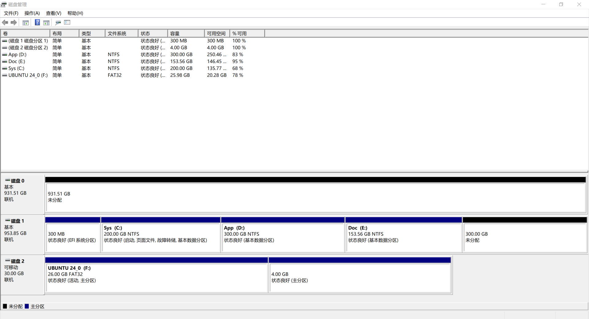给要安装的第二个体系 Ubuntu24.04 预留磁盘空间,保举分出一个磁盘专门给 Ubuntu24.04