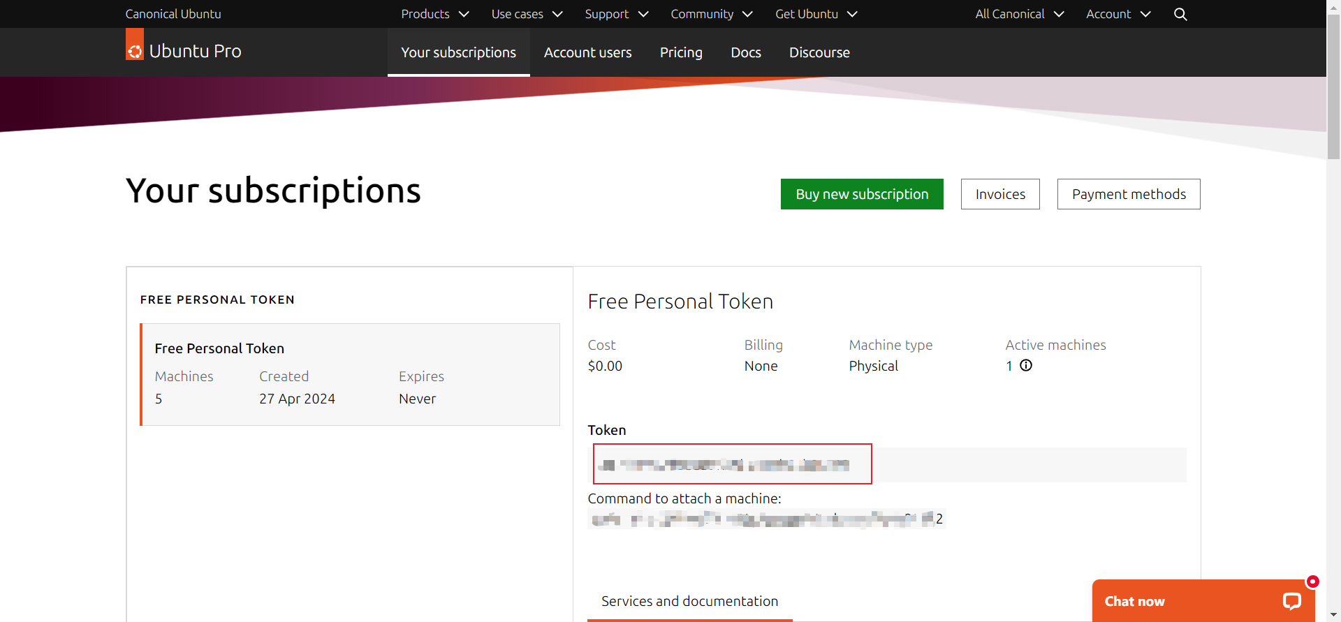 如果未显示Token,手动输入网址https://ubuntu.com/pro/dashboard。