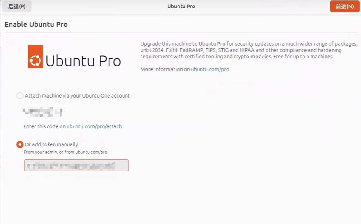 勾选Or add token manually后,接下来要获取Ubuntu Pro的Token。