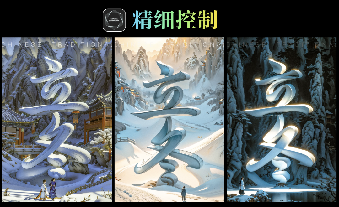 包括上方这种汉字结果,都只能用SD实现。本质上,SD能在确定“骨架”的底子上做延展,而MJ有着很难克制的随机性,对于“骨架”会有一定程度的破坏。不外未来MJ应该也会不断提升可控性。前阵子MJ推出的“–sref(风格参考)”和“–cref(角色参考)”就展示了MJ对于“可控性”提升的目标方向。
