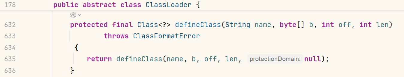 由于defineClass的访问修饰符为protected,所以我们需要寻找使用defineClass的方法,直到找到修饰符为public的方法即可。