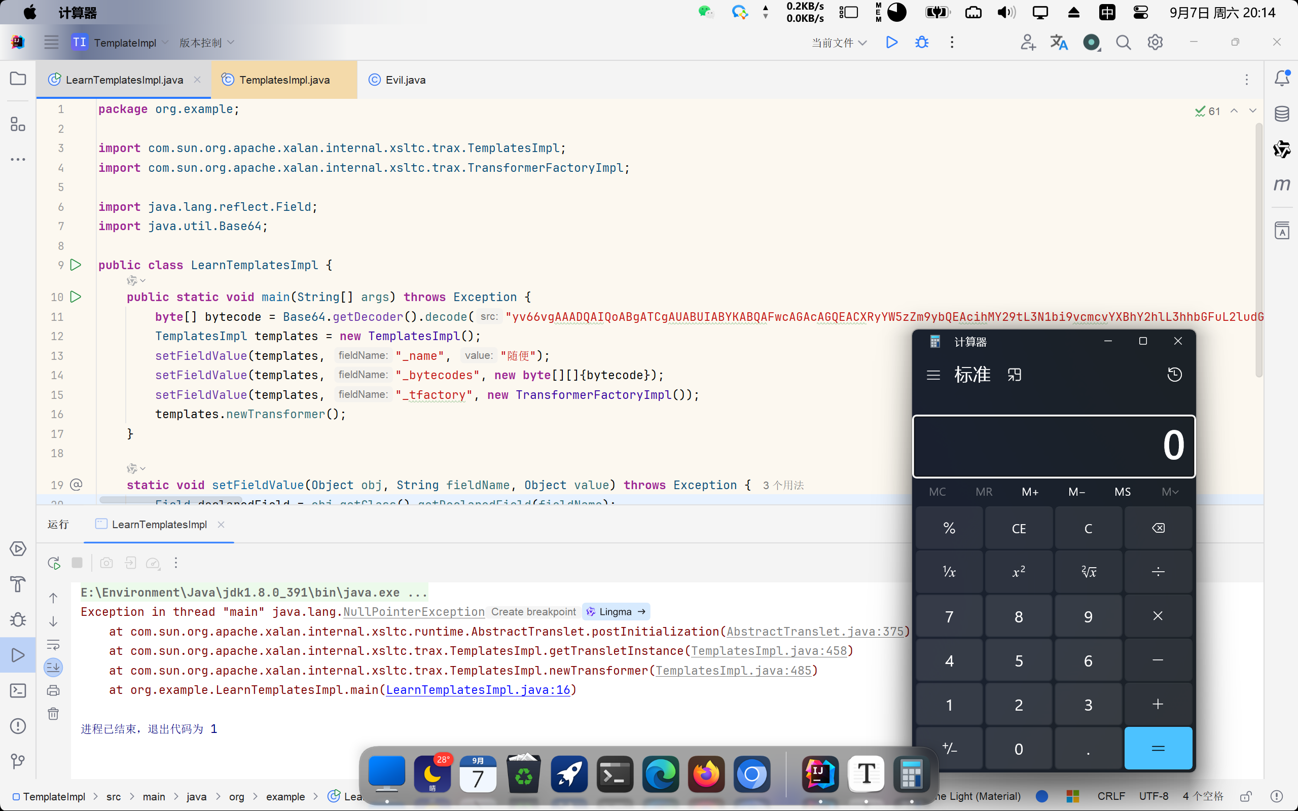 请注意,由于defineTransletClasses方法的限定,所以编写的被加载的类必须继承自com.sun.org.apache.xalan.internal.xsltc.runtime.AbstractTranslet