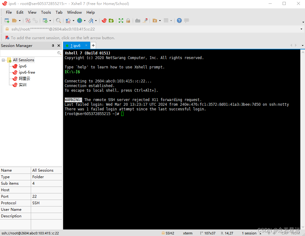 ipv6服务器相对于ipv4服务器代价比力自制,本文使用ipv6服务器来搭建个人博客。