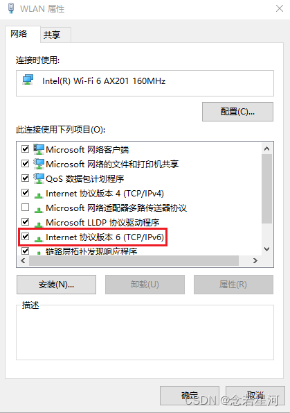 如果连接失败,将电脑连接上手机热点,在WLAN属性中勾选上internet协议版本6,再通过ssh工具进行连接