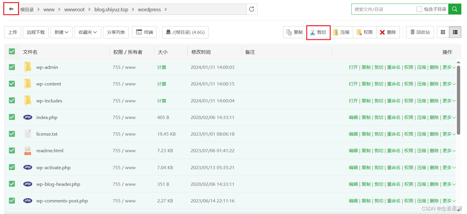全选里面的文件及文件夹,点击剪切,返回到上一目录