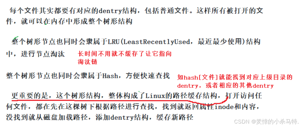 Linux中,在内核中维护树状路径布局的内核布局体叫做: struct dentry;来缓存汗青路径