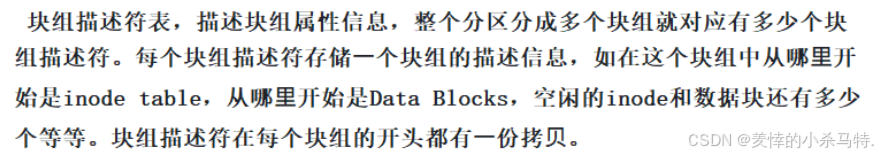 对块组的介绍以及记录块组内其他部分有啥分布等