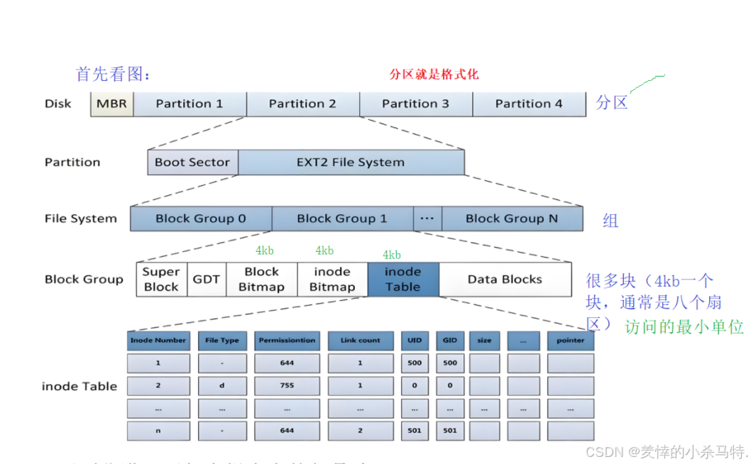 就是我们的inode和块的编号可以从组之间是连续的;但是分区和分区之间不能连续每个分区开始的编号都是0。