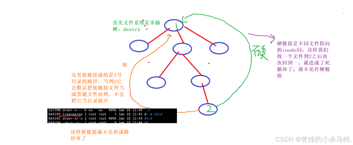 解释下: linux体系只答应本身硬链接(./..),但是不答应用户操纵;而软链接无要求。