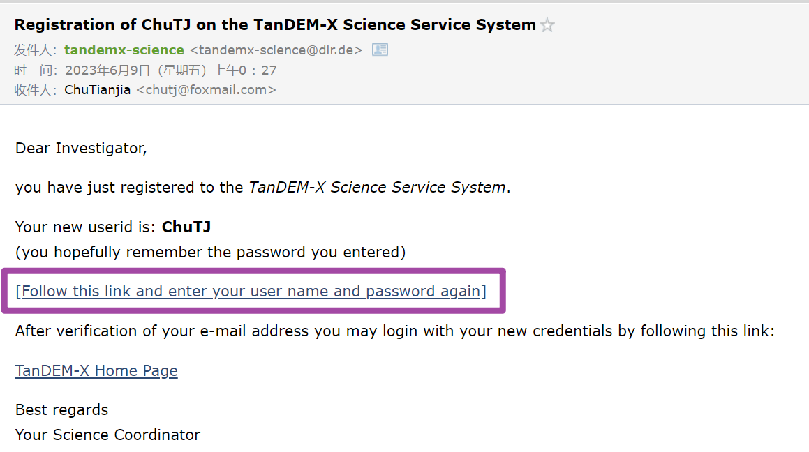 如果各人的申请填写无误,即可在刚刚的注册邮箱中收到一封邮件,表示申请已经提交成功;后期各人等待申请通过,即可开始指定区域数据的下载了。