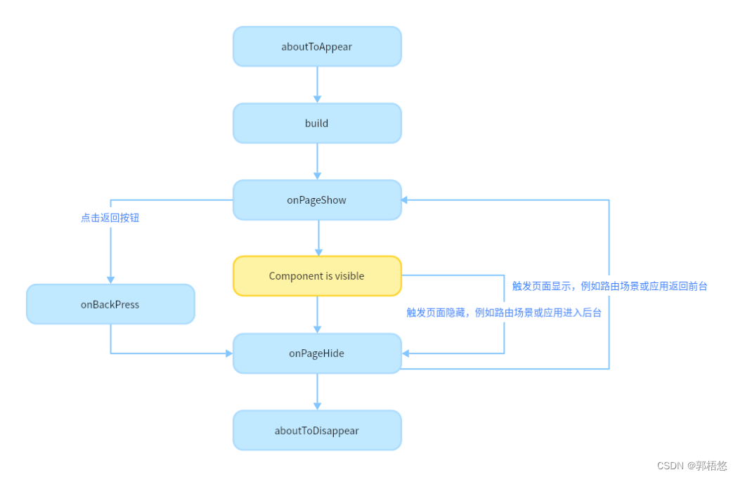 HarmonyOS的生命周期可以分为@Compnent的生命周期和@Entry的生命周期,也就是自定义组件的生命周期和页面的生命周期。