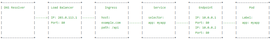 在这个示意图中,Ingress定义了对外部流量的访问规则,包括主机名(host)和路径(path)等。Ingress通过指向一个Service来实现流量的转发。Service根据自身的selector选择与之匹配的Pod,并将请求转发到这些Pod上。Endpoints存储了与Service相关联的后端Pod的IP地址和端口信息,而Pod则是应用程序运行的实际容器