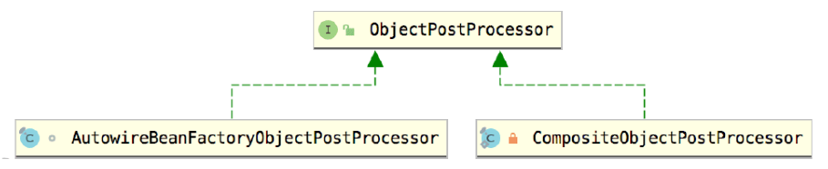 复制代码 ObjectPostProcessor默认有两个继承类,如图4-1所示。