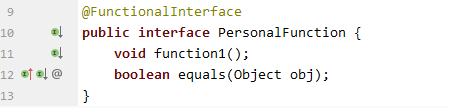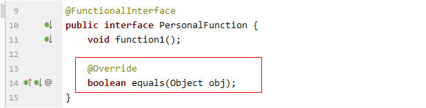 同样是这个自定义的函数式接口,我们修改下里面的抽象方法名称,改为 equals方法,会发现这样就不报错了: