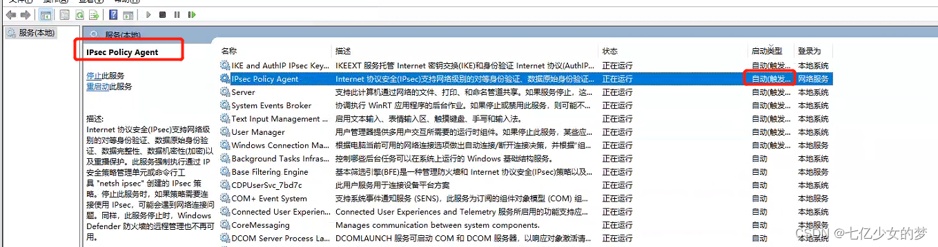 IPsec Policy Agent和Routing and Remote Access 都改为自动,并且启动