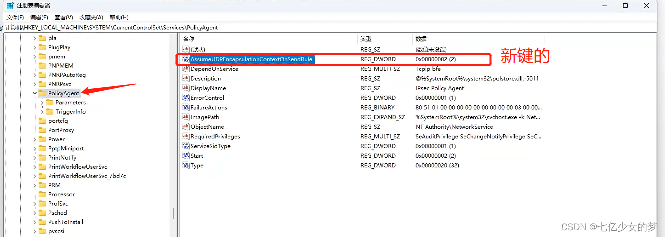 win11 解决L2TP连接尝试失败,因为安全层在初始化与长途计算机的协商时遇到