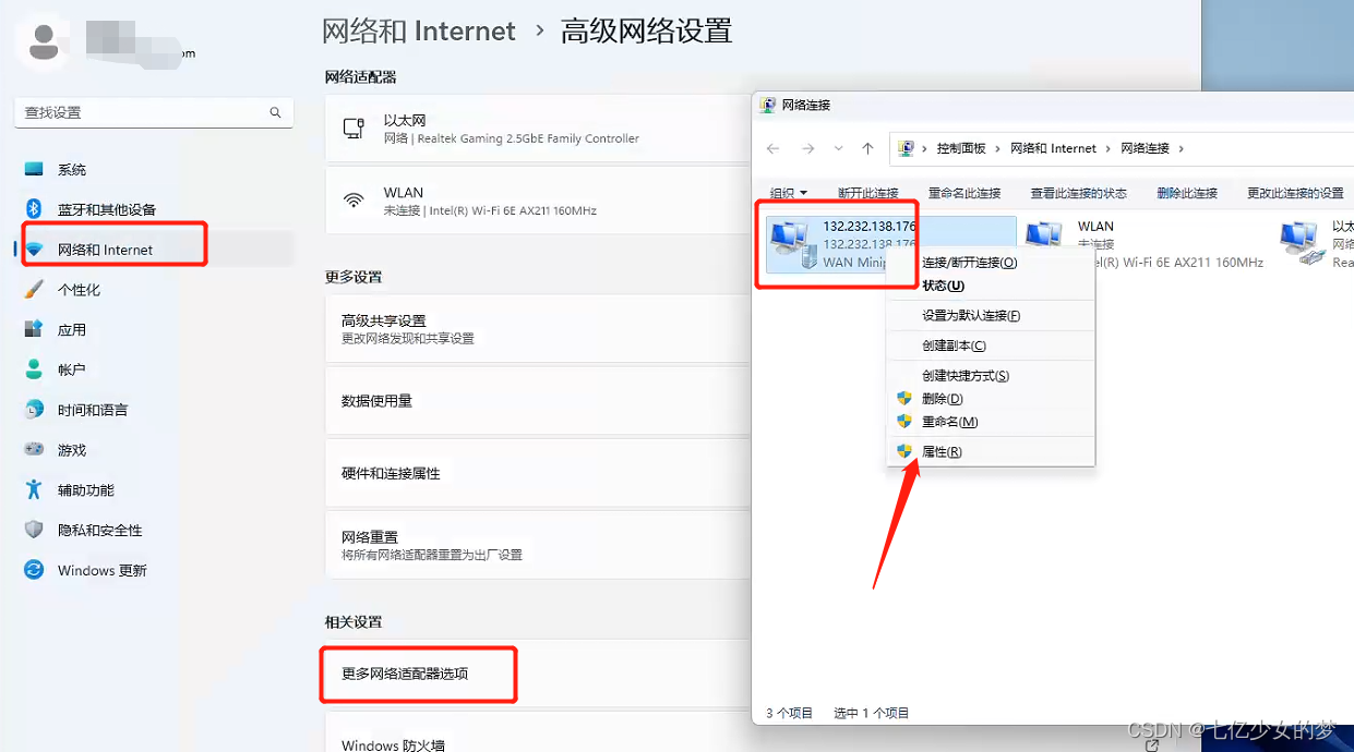 找到要连接的vpn,点击属性按钮