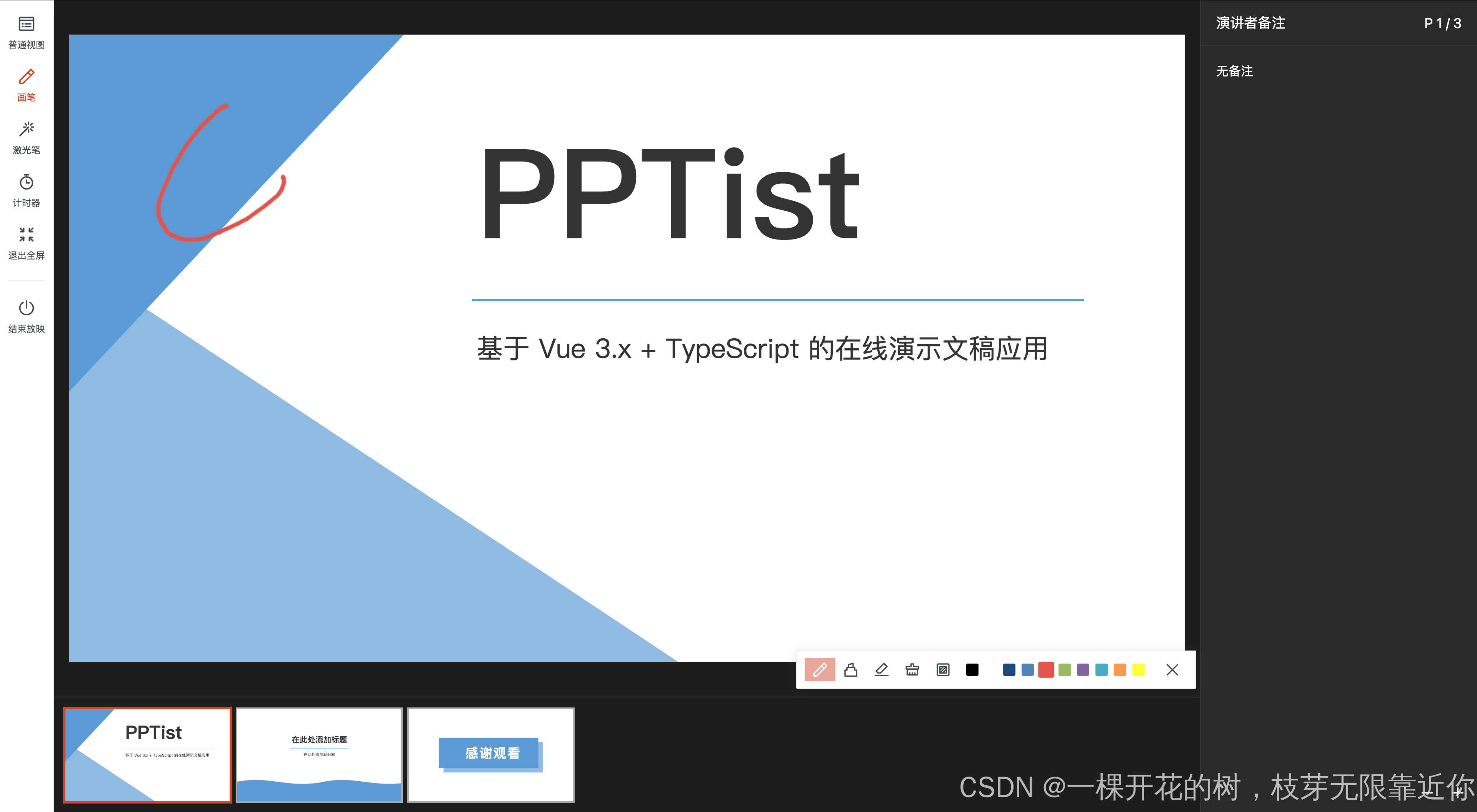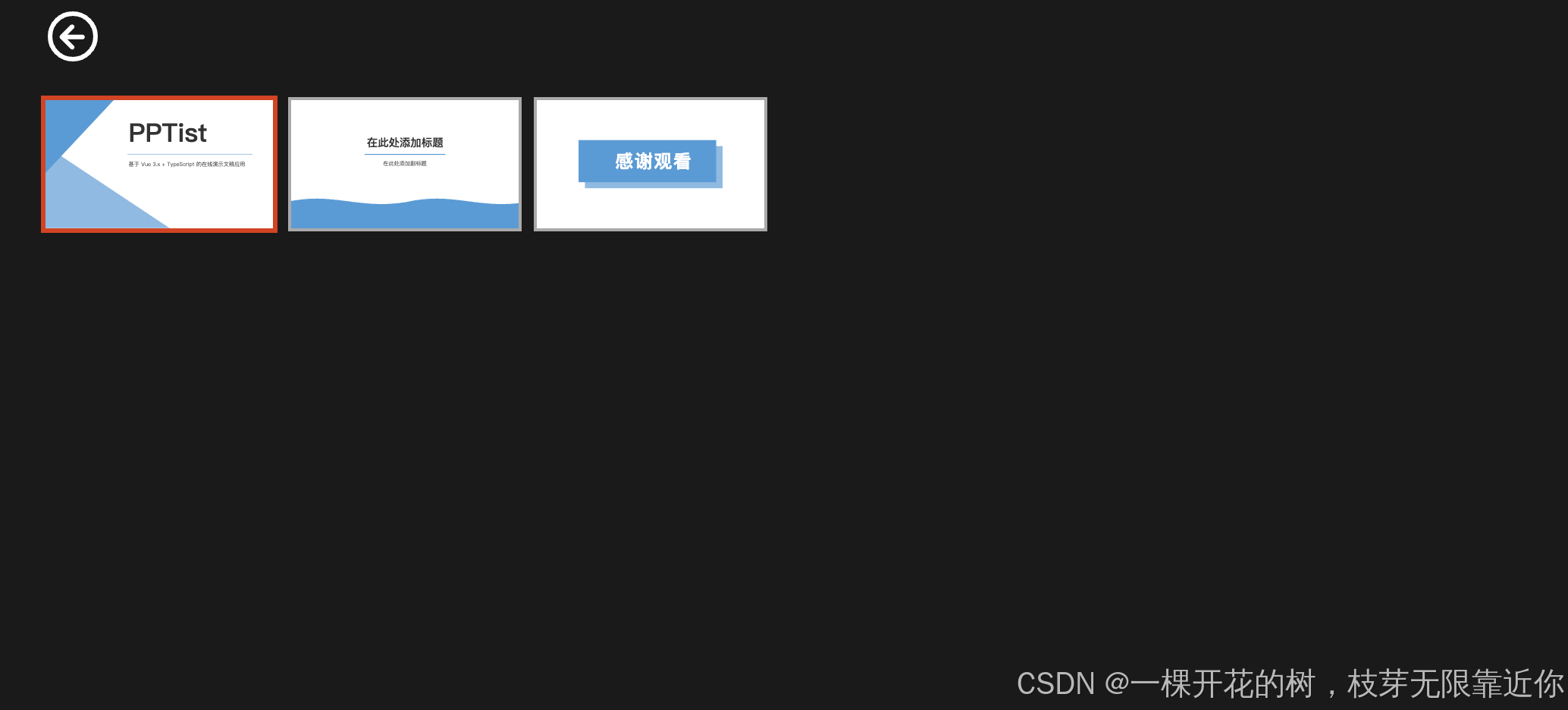 点击“查察所有幻灯片”时,会显示 src/views/Screen/SlideThumbnails.vue 组件,页面就变成如许了
