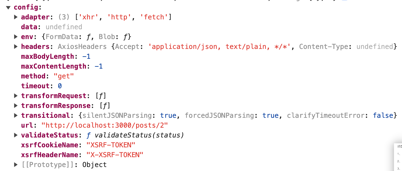 第一个参数为请求地点,第二个参数默认相干配置(不传第二个参数默认get请求)- await axios('http://localhost:3000/posts', {method: 'get', params: {xx: 1}})