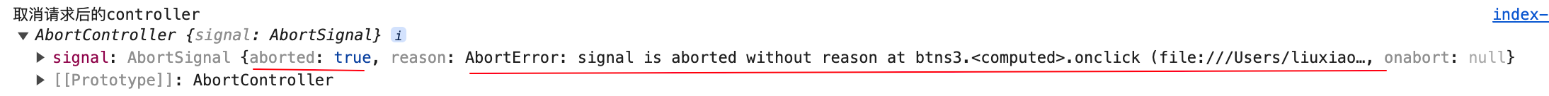- console.log('取消请求后的controller',controller)