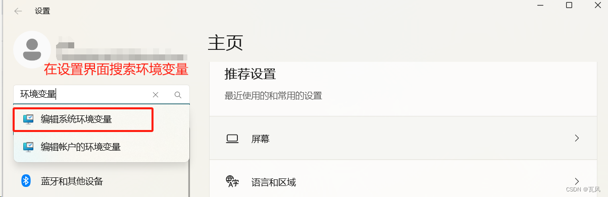 adb环境变量;按下win+i,在设置界面搜索”环境变量”-”系统环境变量”进入系统属性界面